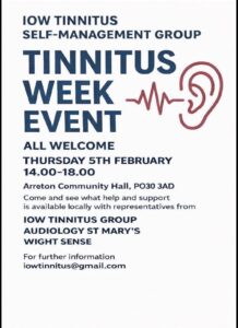 - Tinnitus Support Group in Whitstable at Whitstable Hearing on 3rd February at 3pm – for more information contact [email protected]